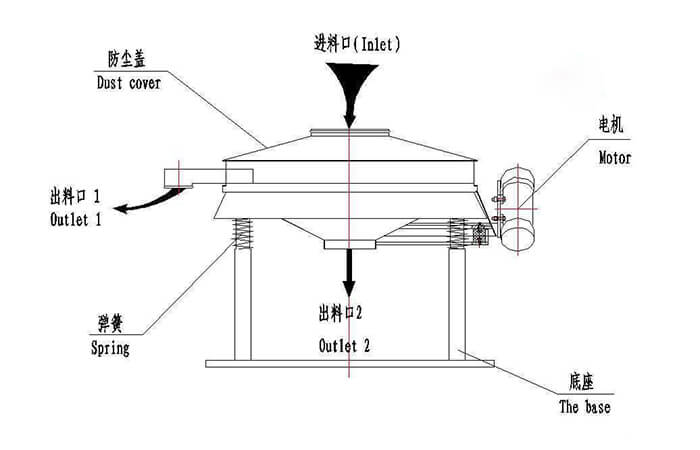 普通旋振篩:裝配一臺立式振動電機,利用立式振動電機作為激振源,在電機的帶動下物料在篩框做水平、垂直、傾斜的三維運動。通過不同目數(shù)的篩網(wǎng)過網(wǎng)完成篩分目的,具有自動篩分排料的功能。