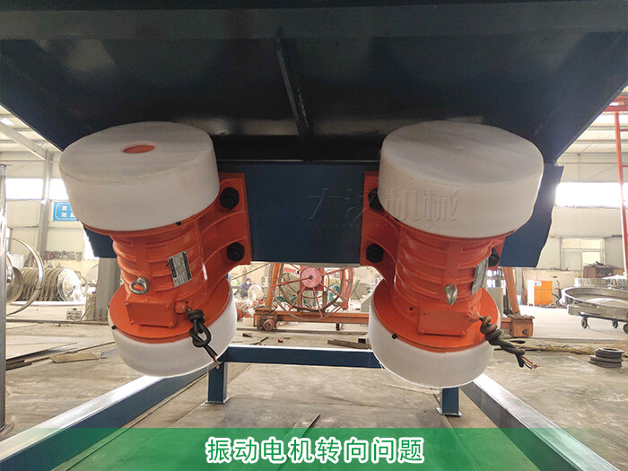 直線(xiàn)篩時(shí)使兩臺(tái)臥式振動(dòng)電機(jī)作為振動(dòng)篩,電機(jī)的轉(zhuǎn)向和分為正轉(zhuǎn)和反轉(zhuǎn)兩種,正常情況下兩臺(tái)電機(jī)的轉(zhuǎn)向是相反方向的,但如果用戶(hù)在接電時(shí)正負(fù)極接錯(cuò)就會(huì)引起電機(jī)同向旋轉(zhuǎn)就會(huì)出現(xiàn)篩面物料不走料的問(wèn)題;