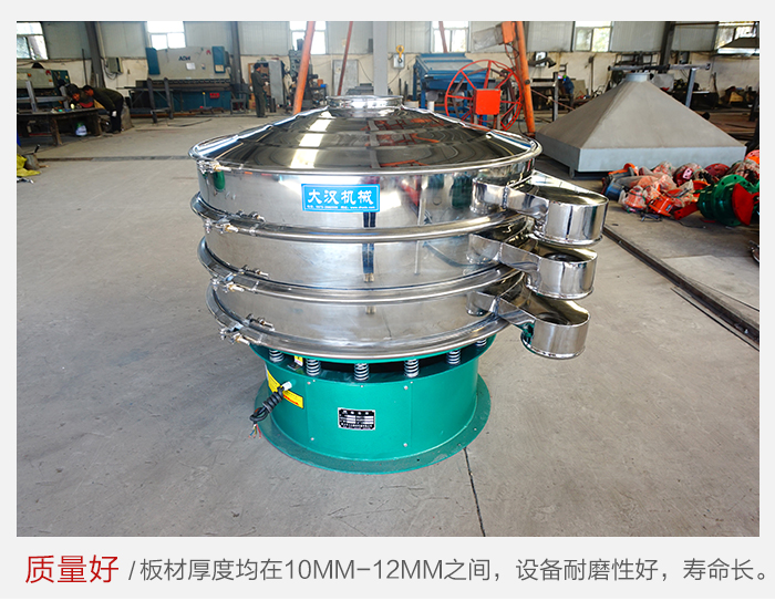大漢廠家生產(chǎn)的雙層旋振篩采用優(yōu)質(zhì)碳鋼或不銹鋼材質(zhì),板材厚度均在10mm-12mm之間,設(shè)備耐磨性好,使用過(guò)程中不會(huì)因設(shè)備質(zhì)量問(wèn)題而造成設(shè)備停機(jī)問(wèn)題,可以在很大程度上降低設(shè)備的維護(hù)費(fèi)用。
