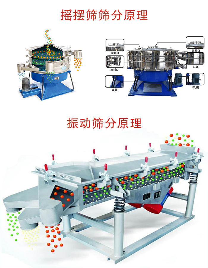 針對(duì)30目以粗上物料而言,振動(dòng)篩和搖擺篩產(chǎn)量基本相同,對(duì)30以細(xì)至500目原材料來說,搖擺篩的生產(chǎn)量則大大高過振動(dòng)篩,一般為振動(dòng)篩的5—10倍。