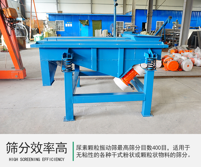 尿素顆粒振動(dòng)篩最高篩分目數(shù)400目,適用于粒度在0.074-5mm,含水量小于7%,無粘性的各種干式粉狀或顆粒狀物料的篩分,給料粒度不大于10mm,非常適合對尿素顆粒進(jìn)行分級除雜。