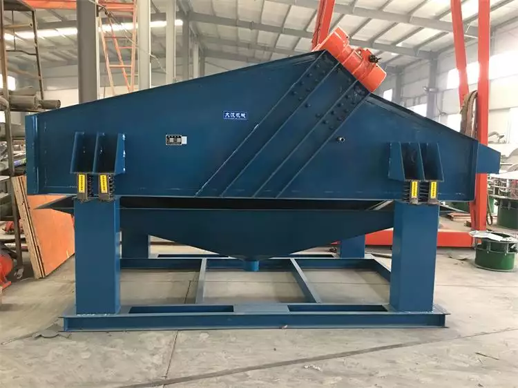 電機(jī)通過(guò)三角帶使激振器的偏心塊高速旋轉(zhuǎn),運(yùn)行的偏心塊產(chǎn)生很大的離心力,刺激篩箱產(chǎn)生一定幅度的圓周運(yùn)動(dòng),篩上的物料在傾斜的篩面上受到篩箱傳遞的沖量,產(chǎn)生連續(xù)的拋擲運(yùn)動(dòng),物料與篩面相遇的過(guò)程使小于篩孔的顆粒通過(guò)篩網(wǎng),從而實(shí)現(xiàn)分級(jí)。