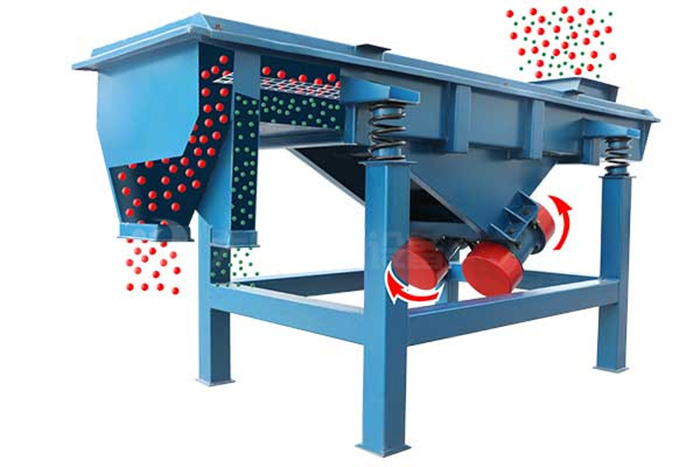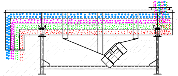 直線(xiàn)型振動(dòng)篩兩電機(jī)軸相對(duì)篩面有一傾角,在激振力和物料自重力的合力作用下,物料在篩面上被拋起跳躍式向前作直線(xiàn)運(yùn)動(dòng),從而 達(dá)到對(duì)物料進(jìn)行篩選和分級(jí)的目的??捎糜诹魉€(xiàn)中實(shí)現(xiàn)自動(dòng)化作業(yè)。