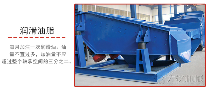 5、高效振動(dòng)篩若采用潤(rùn)滑脂潤(rùn)滑,應(yīng)每月加注一次潤(rùn)滑油。油量不宜過(guò)多,加油量不應(yīng)超過(guò)整個(gè)軸承空間的三分之二,否則會(huì)引起軸承溫度過(guò)高。