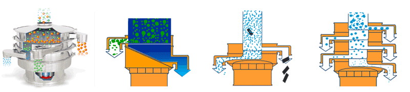 | 應(yīng)用 | 要用于物料原料的篩分和成品的最終生產(chǎn)檢驗(yàn),可以去除產(chǎn)品中的結(jié)塊和污染物,一次操作最多可提供5級分級。 | 適合高粘性、高靜電細(xì)粉,篩分精度可以提高80%以上,產(chǎn)量提高2-5倍。 | 模擬人工篩分的動作,產(chǎn)生了水平和投擲的三維滾動運(yùn)動,適用于500目以內(nèi)的細(xì)粒狀物料,篩分精度提高了90-95%,產(chǎn)量是圓形振動篩的5-10倍。 | 適合一般的粗略篩分或除雜,的進(jìn)、出料口設(shè)計在同一垂直方向上,這樣會加快物料的排料速度,處理量是普通圓形振動篩的2-5倍。 | 經(jīng)常用在液體過濾行業(yè),可去除液體或懸浮物中存在的不需要的顆粒,當(dāng)然也是可以作為粉末除雜??捎迷谔幚砹枯^小的工廠或小型作坊。 |
