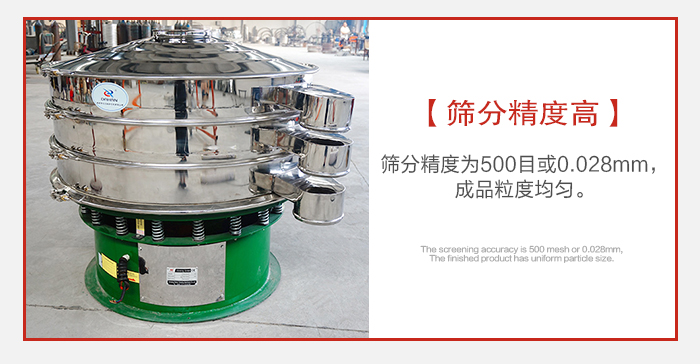 1、篩分精度為500目或0.028mm,成品粒度均勻;